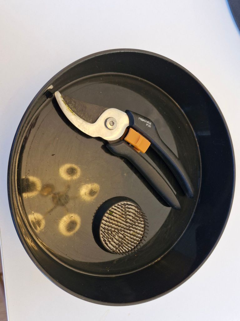 Asetelma tehtiin matalaan astiaan kukkasiilin avulla.