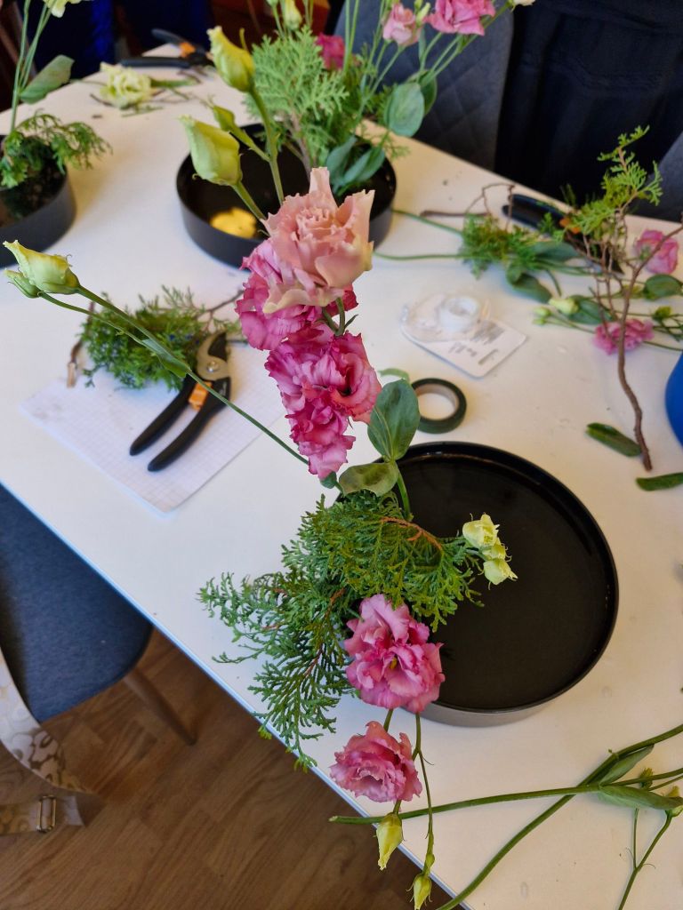 Aika meni kurssilla erittäin nopeasti. Ikebanan teko on erittäin rentouttavaa ja mielenkiintoista.